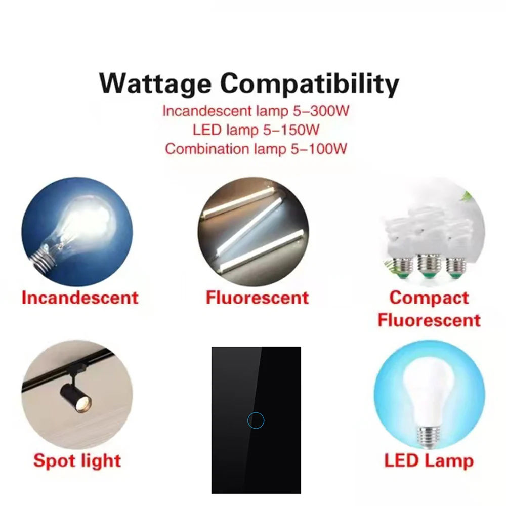 Tipo: interruptor de toque de 1 via de 1/2/3 gang